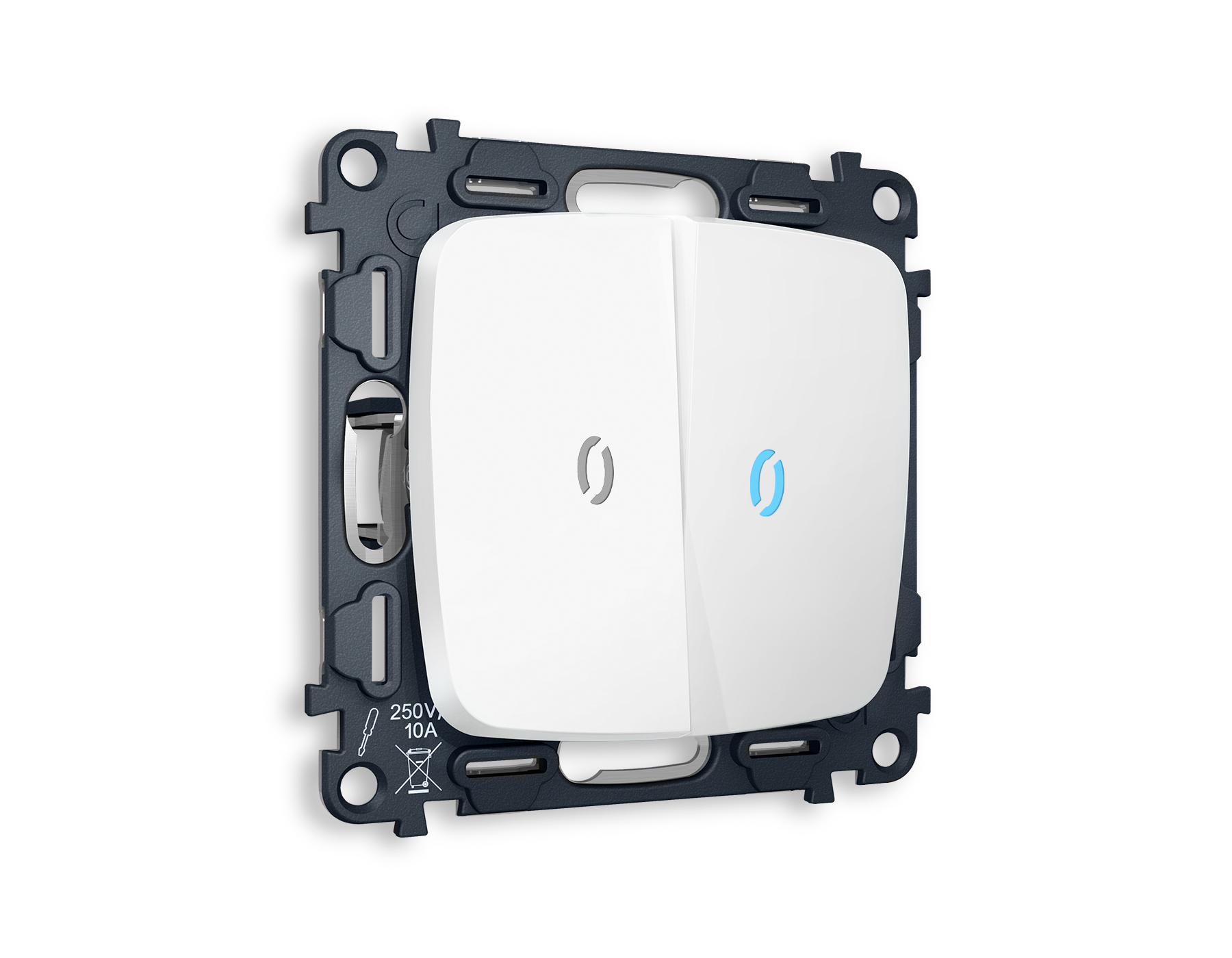 MO124020 Комплект механизма 2-кл выключателя с подсветкой 10000K OMEGA Белый матовый QUANT (OP1240, VM115, G17B)