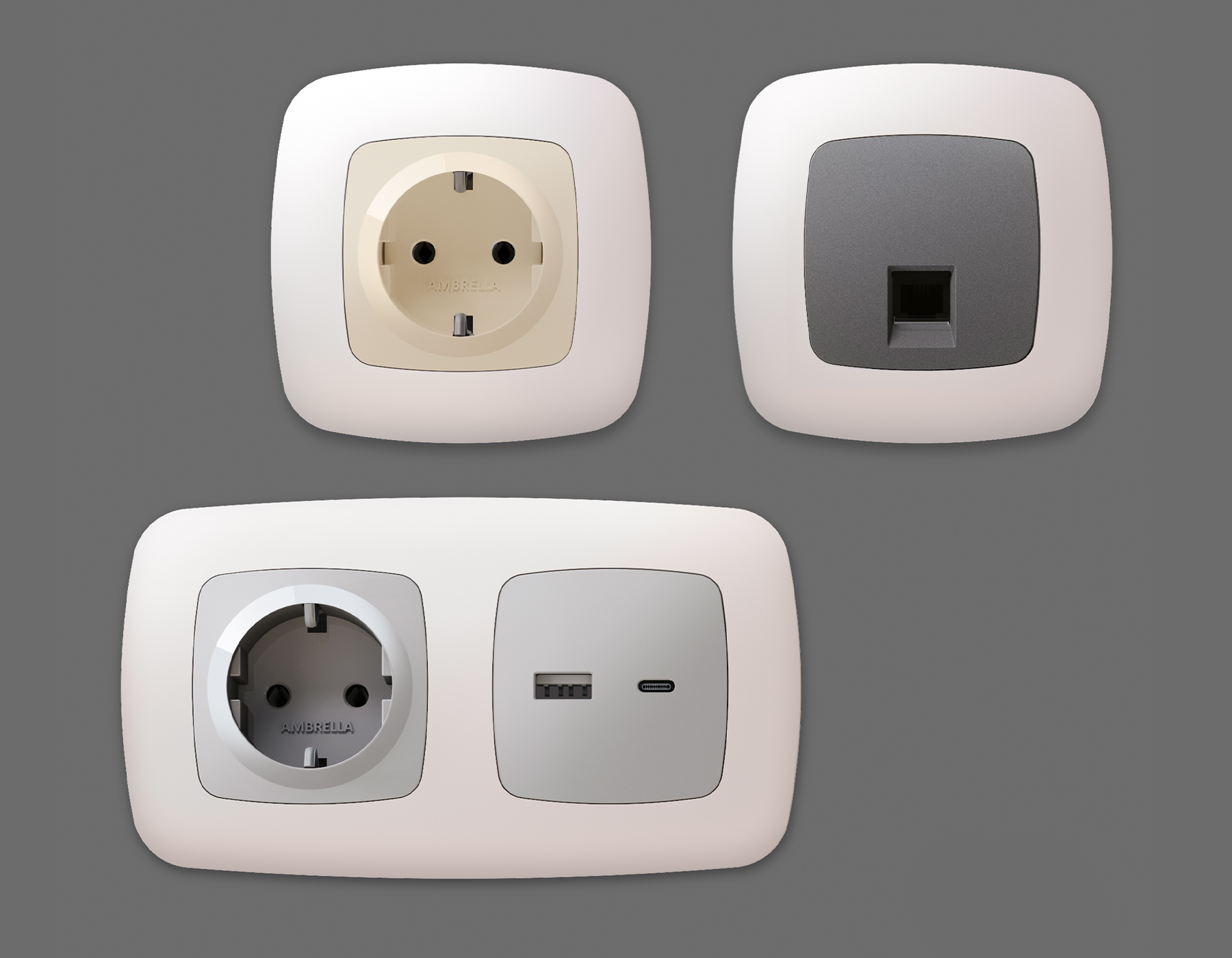 Многогранный ассортимент Ambrella Volt включает в себя механизмы, лицевые панели и рамки, а также комплекты, доступные в различных цветовых решениях. Продукция представлена в модульном исполнении, что позволяет гибко настраивать внешнийвид и функциональность. Вам будет легко заменить лицевую панель, рамку или механизм, найдя идеальное сочетание цветов.