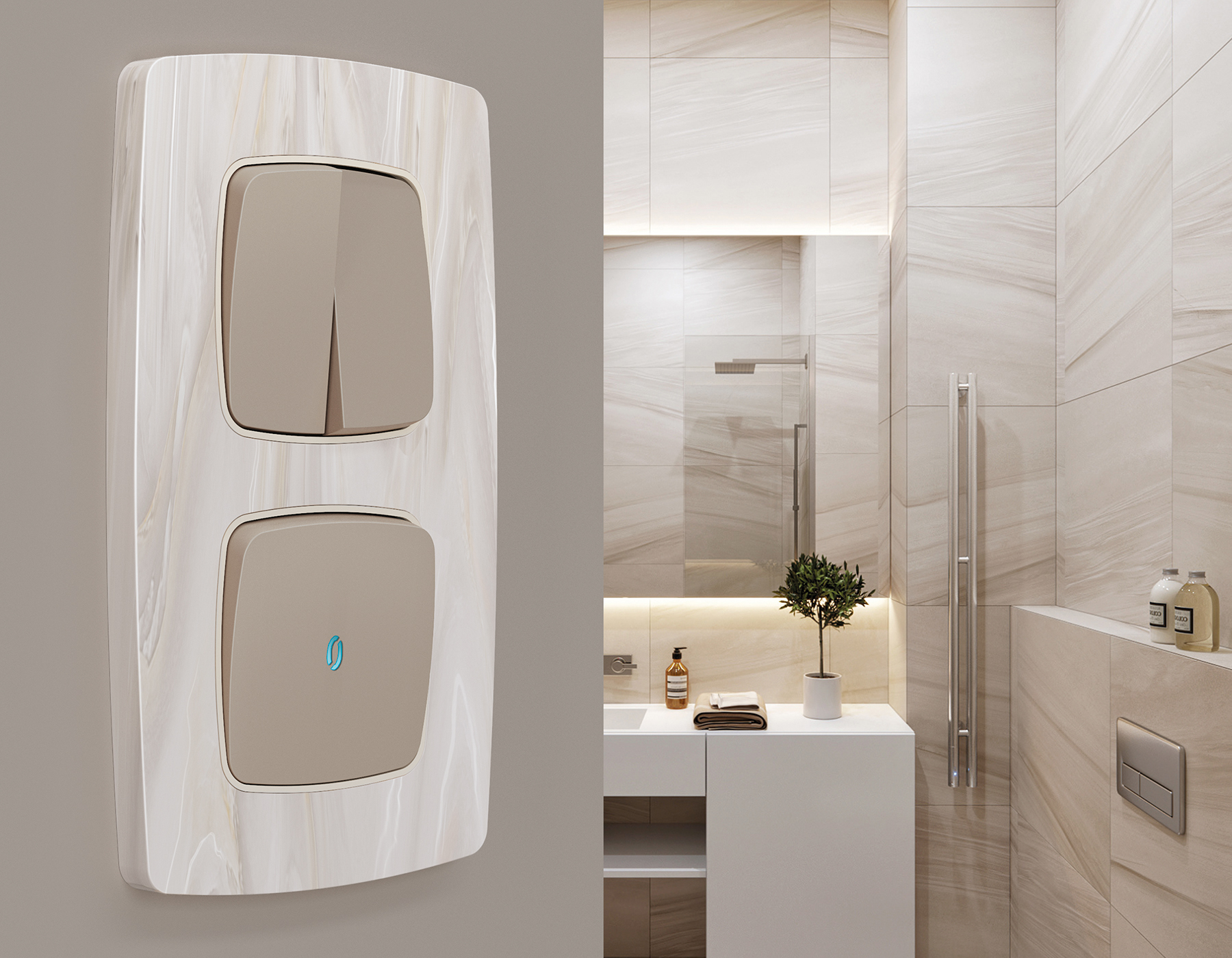 Многогранный ассортимент Ambrella Volt включает в себя механизмы, лицевые панели и рамки, а также комплекты, доступные в различных цветовых решениях. Продукция представлена в модульном исполнении, что позволяет гибко настраивать внешнийвид и функциональность. Вам будет легко заменить лицевую панель, рамку или механизм, найдя идеальное сочетание цветов.