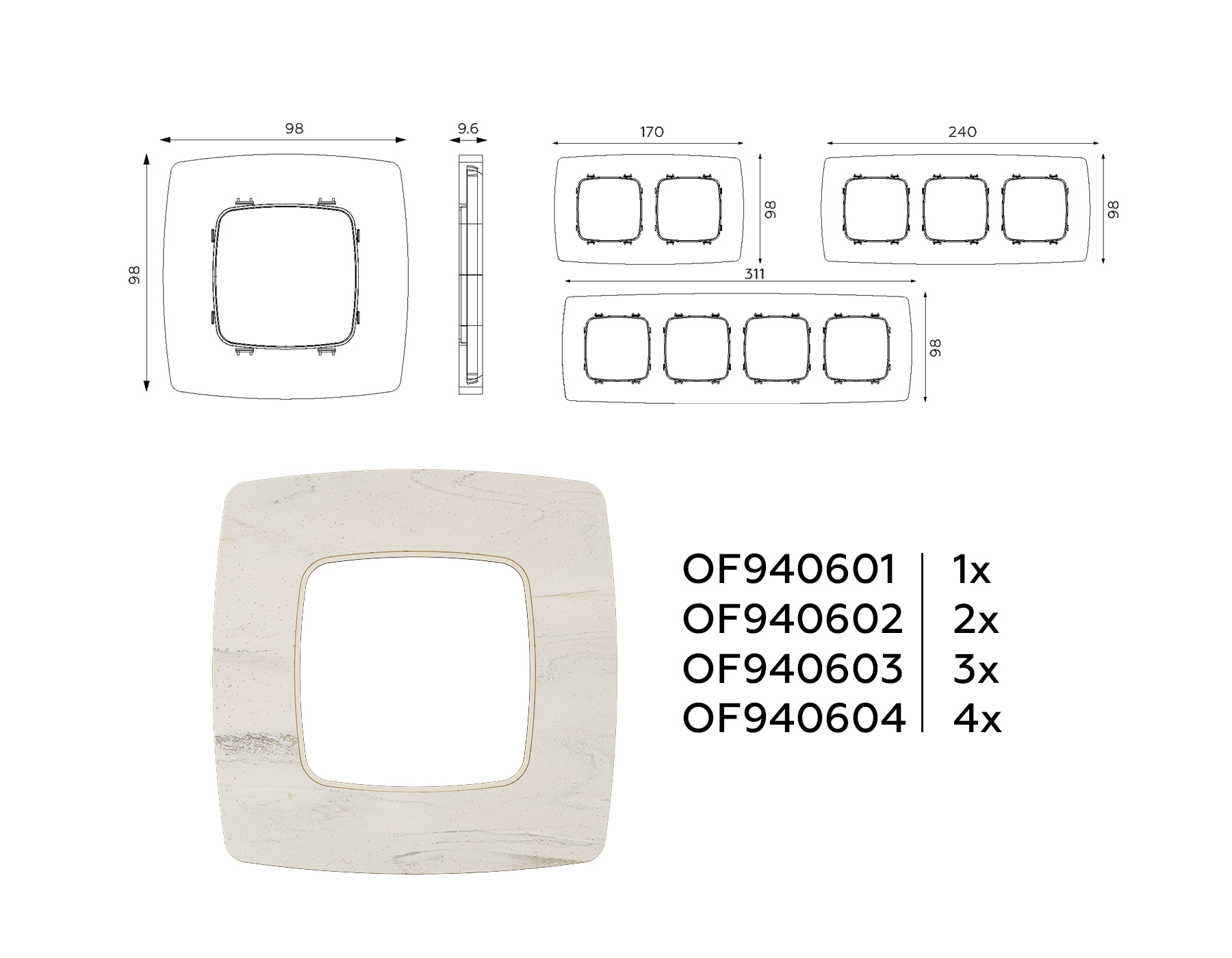 OF940603 Рамка OMEGA Opera (Серо-бежевый мрамор) 3-ая