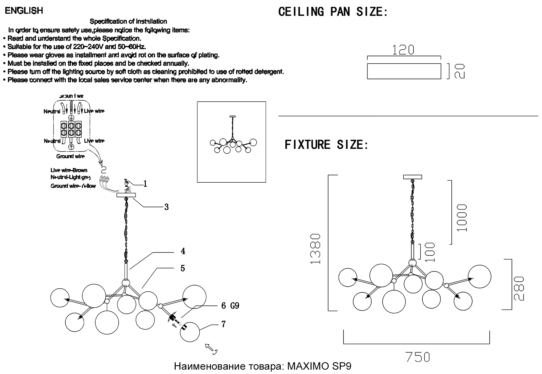 | Тип установки: | Люстра |