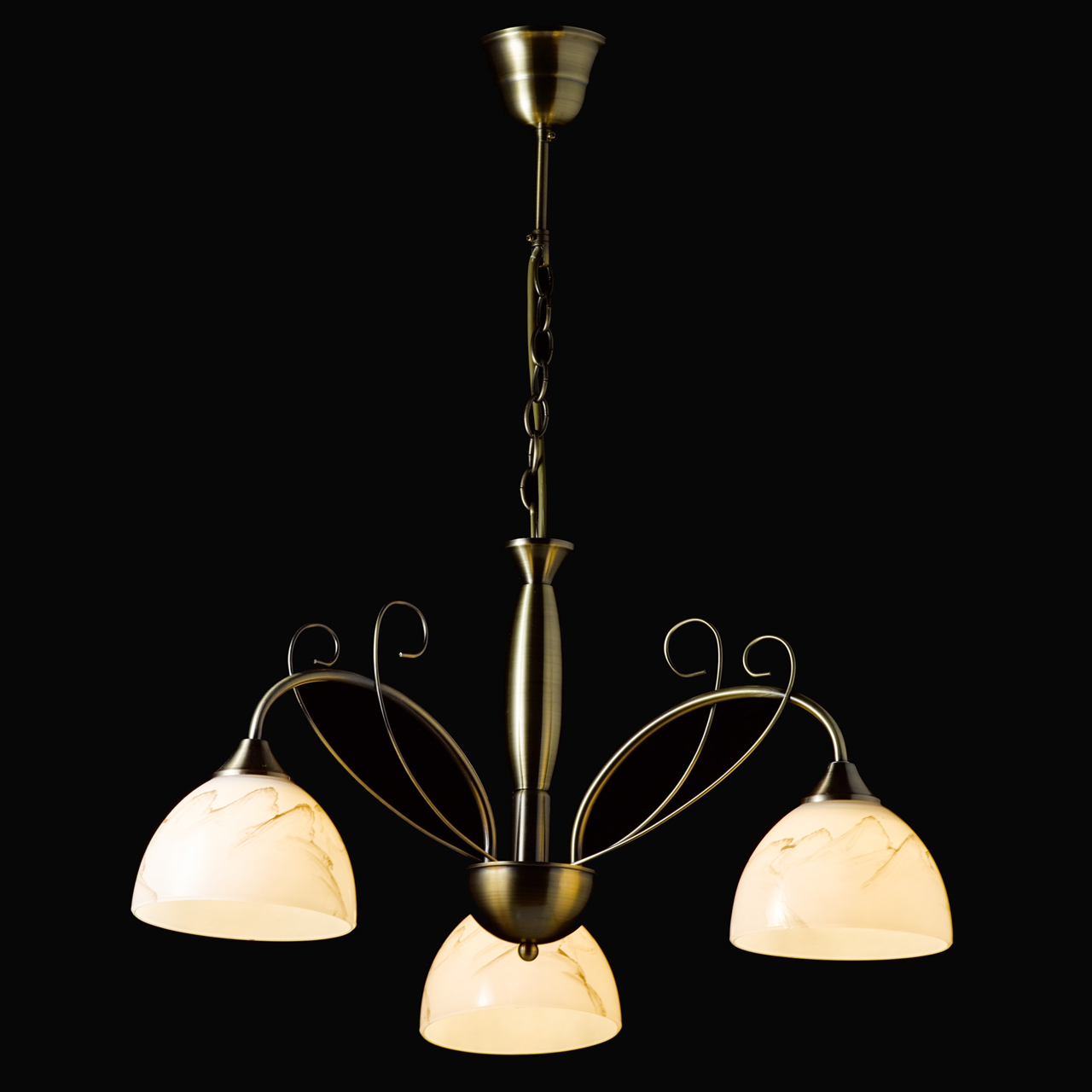 Классический дизайн в современной интерпретации.Плафоны с рисунком под мрамор обеспечивают отличное распределение света.Популярный цвет античной бронзы идеален для традиционных интерьеров.Металлический декор добавляет легкости модели.Возможность регулировать высоту светильника