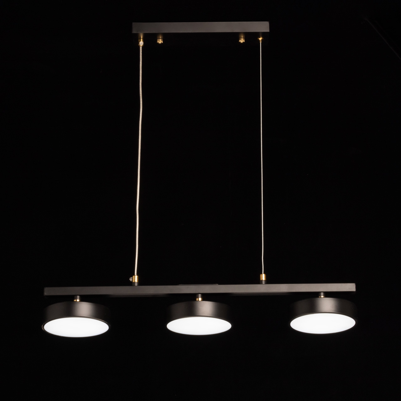 Подвесной светильник Гэлэкси из коллекции с одноименным названием – это идеальное решение для тех, кто ценит лаконичный дизайн и функциональность. Предназначенный для общего освещения помещений площадью до 12 квадратных метров, он превращает обычное освещение в стильный акцент, идеально вписывающийся в концепцию лофт или хай-тек.Гэлэкси – это гармоничное сочетание строгости и изысканности. Его корпус выполнен из металла, окрашенного в глубокий, благородный черный цвет. Некоторые элементы светильника подвергнуты гальванизации, что придает им мягкий, теплый отблеск бронзы, приятно контрастирующий с матовым черным. Светильник оснащен тремя плафонами, расположенными таким образом, чтобы обеспечить равномерное освещение помещения. Источники света – современные светодиоды, известные своей энергоэффективностью и долгим сроком службы. Светодиоды надежно защищены белым акриловым рассеивателем, который мягко рассеивает свет, создавая комфортную и уютную атмосферу. С помощью настенного выключателя есть возможность менять температуру освещения от 3000-6000K.