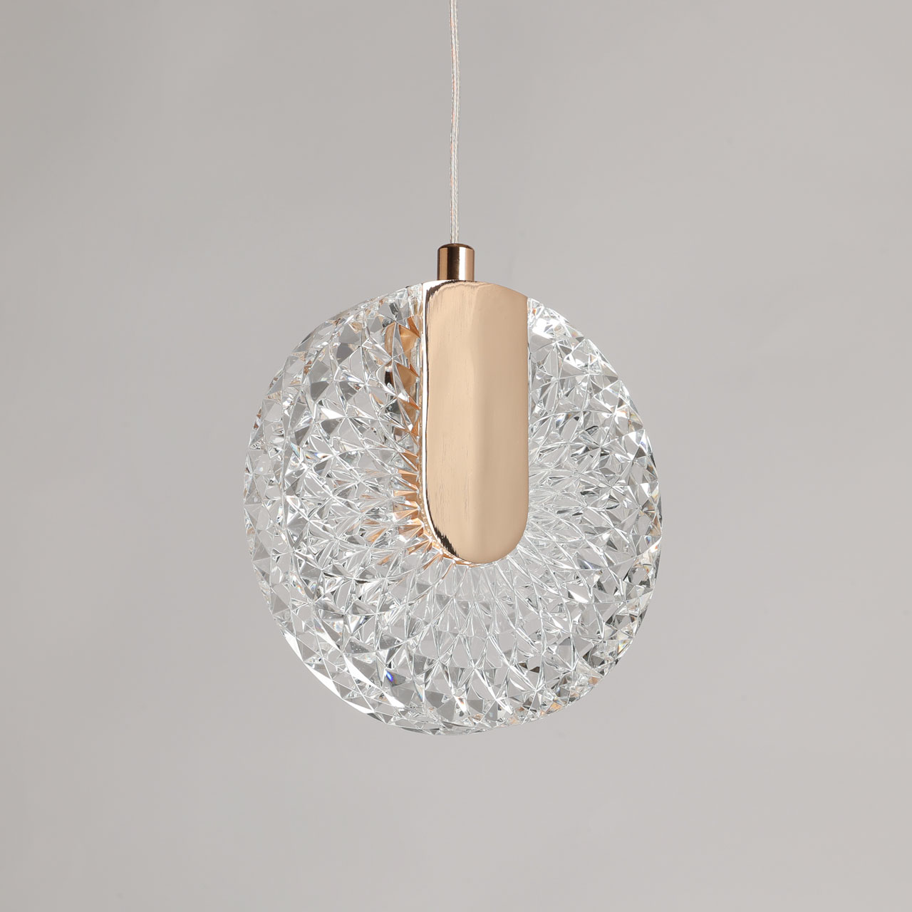 Цвет золота придает подвесу изысканности. Необычное сочетание современного стиля, классического цвета и инновационных светодиодов привлекает внимание к подвесу и создает единый образ. Свет красиво преломляется в фактурном акриле. Возможность регулировать комфортную высоту. Светодиодные источники света безопасны и экономичны.