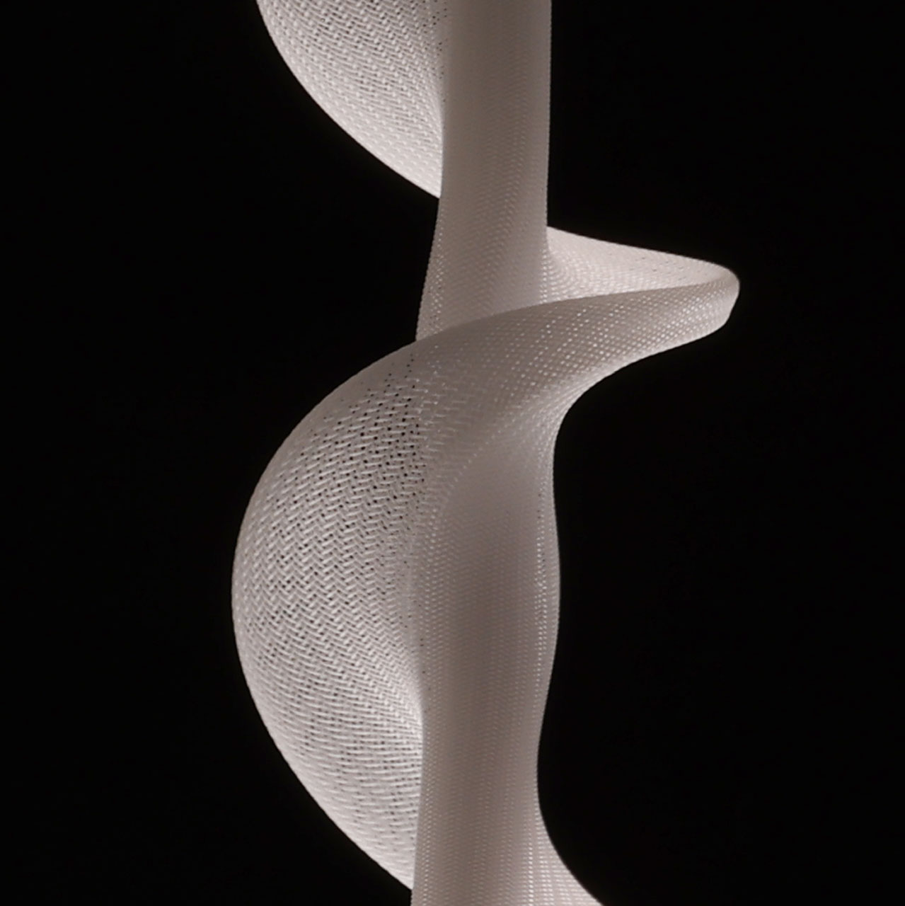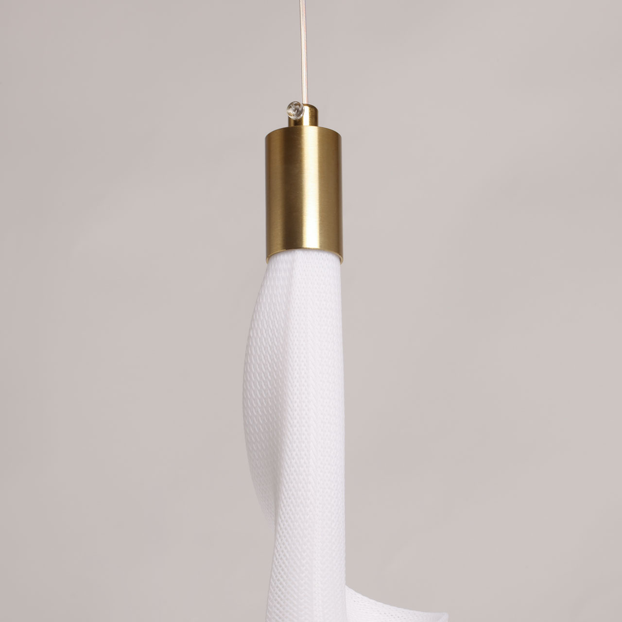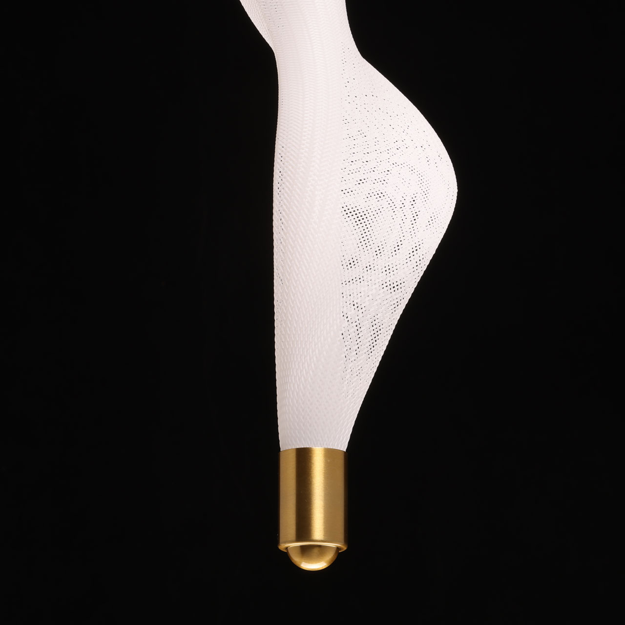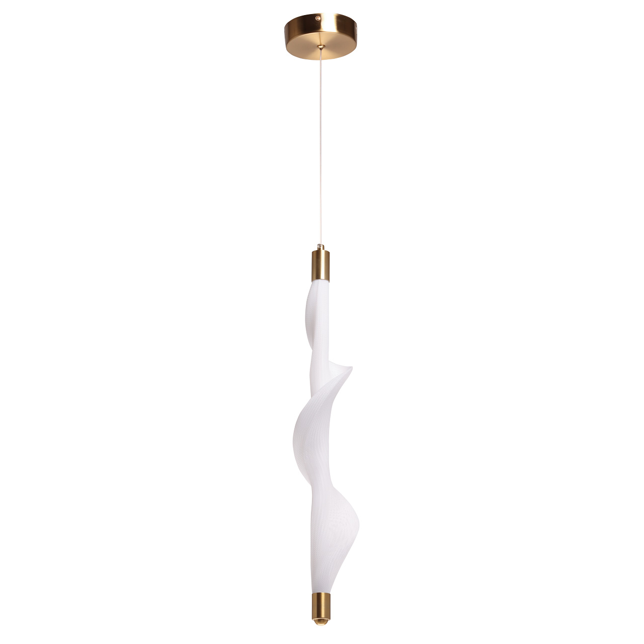 Металлическое основание подвеса гальванизировано в цвет бронзы. Светодиодный источник света закрыт белым матовым акрилом и оригинальным плафоном в виде волны. Волна плафона выполнена из акрила ячеечной структуры.