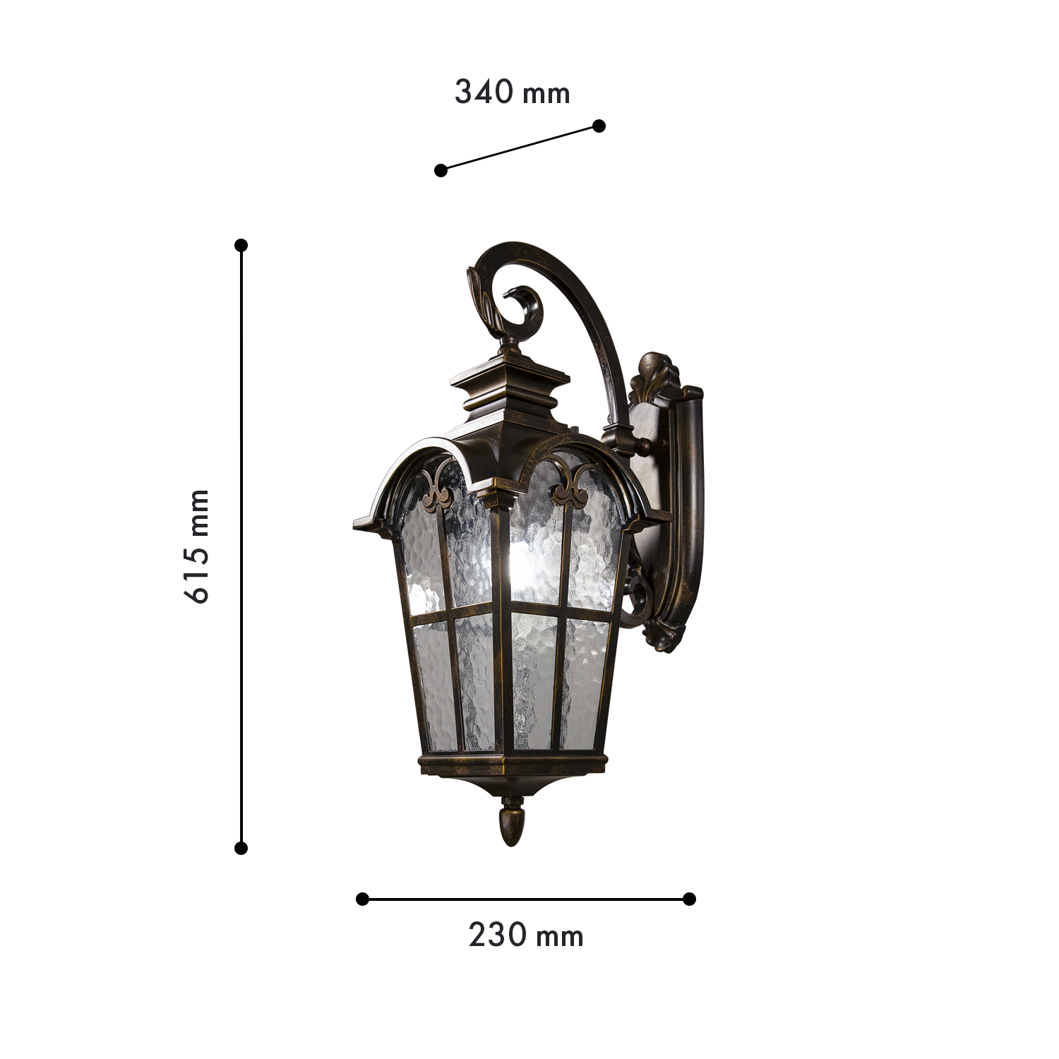 2036-1W, уличный светильник, D330xW230xH520, 1xE27x60W, IP44