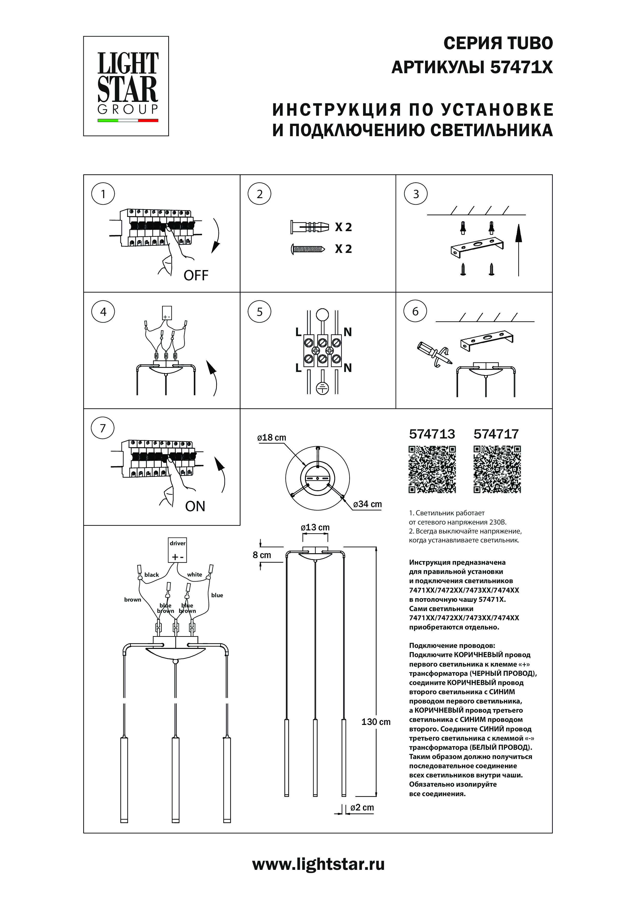 Подвесное крепление 3х с трансформатором к 747XXX Tubo Lightstar 574713
