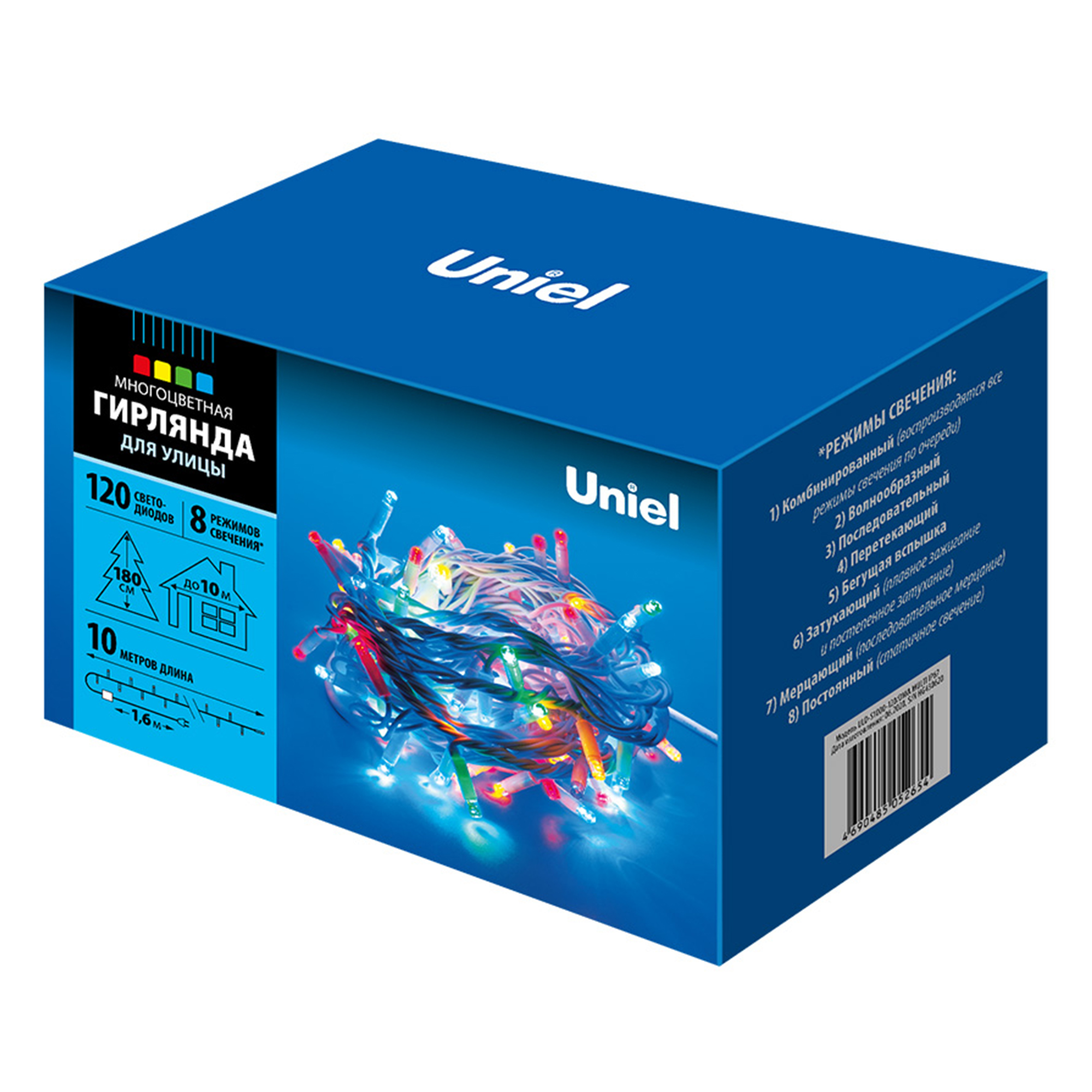 ULD-S1000-120/DWA MULTI IP67 Гирлянда светодиодная с контроллером, 120 светодиодов, 10 м, разноцветная, IP67, провод белый