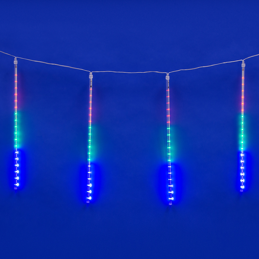 ULD-E2405-240/DTK MULTI IP44 METEOR Занавес светодиодный фигурный «Падающие звезды», соединяемый, 2х0,5м. 8 подвесов. Разноцветный свет. Провод прозрачный. TM Uniel.