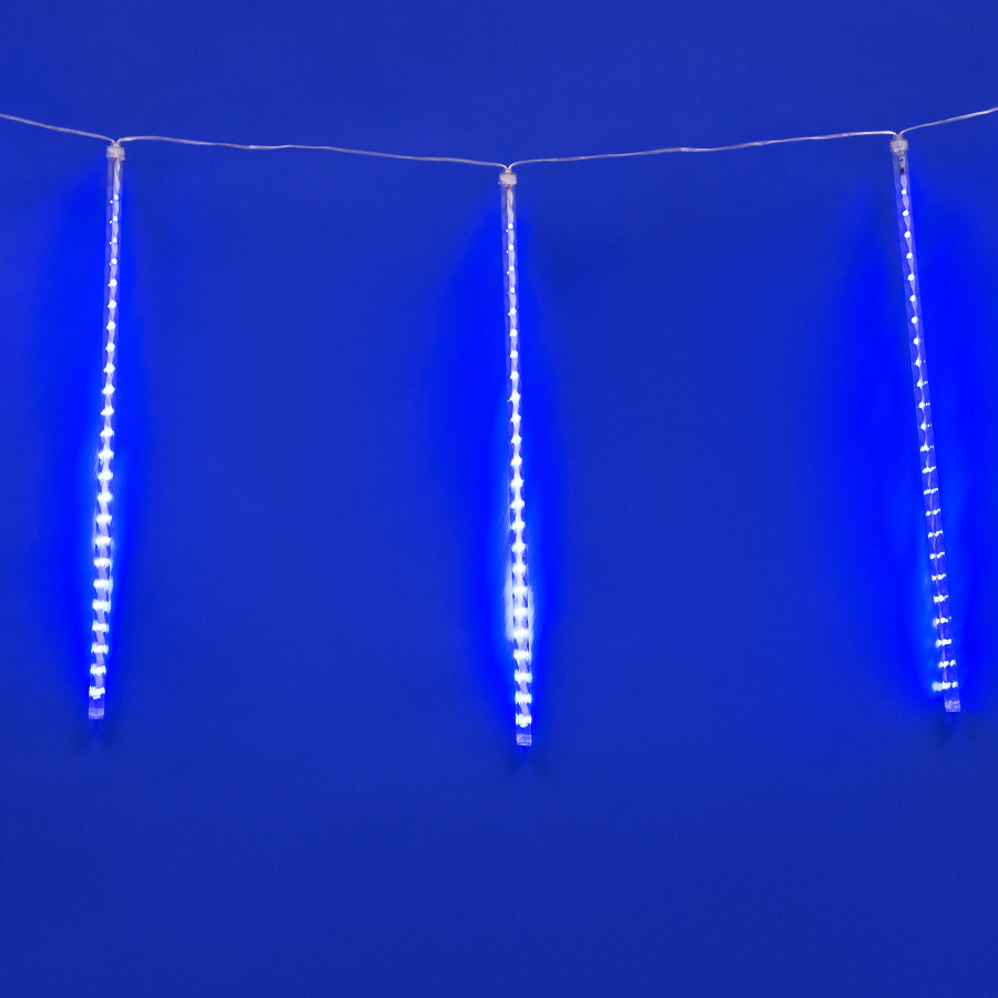 ULD-E1505-336/DTK BLUE IP44 TWISTED METEOR Занавес светодиодный фигурный «Звездный дождь», соединяемый. 6 подвесов. 336 светодиодов. Размер 1,5х0,5м. Цвет свечения синий. IP44. Провод прозрачный. Упаковка картон.