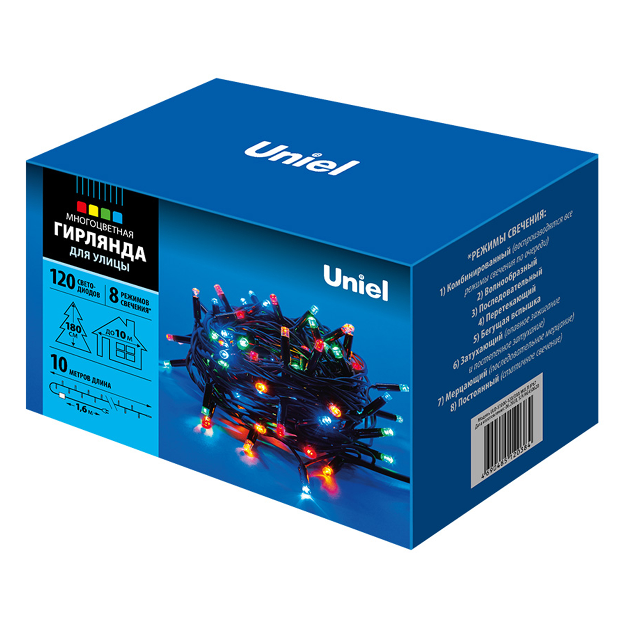 ULD-S1000-120/DBA MULTI IP67 Гирлянда светодиодная с контроллером, 10м. 120 светодиодов. Разноцветный свет. Провод черный. ТМ Uniel