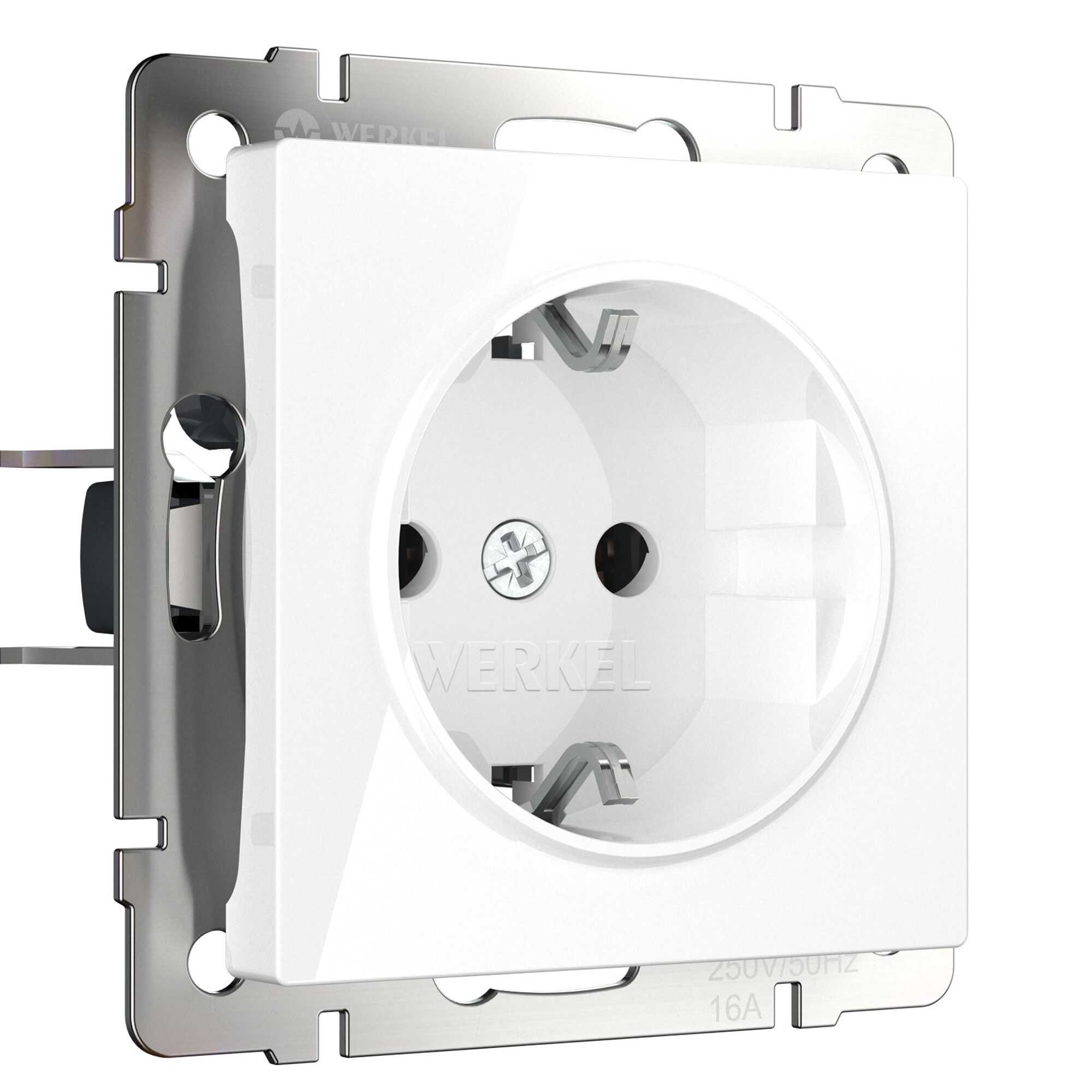 Розетка с заземлением и шторками (белая) W1171101